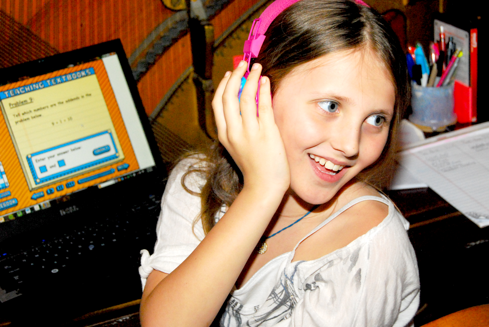 Lovely family! I also think the desk AND the twinkle lights in your homeschool room are fab!